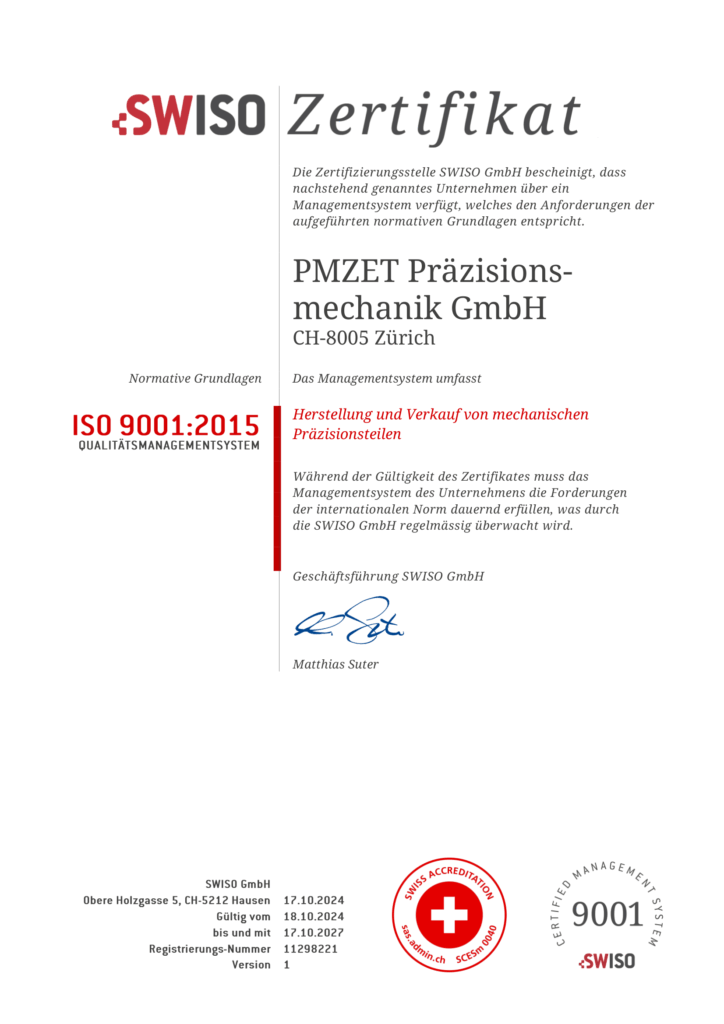 Seit 18. Oktober 2018 ISO 9001:2015 zertifiziert